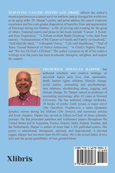 Surviving Cancer: Poetry and Prose reflects the author's recent experiences as a cancer survivor and how cancer changed his worldview as an aging elder. Dr. Harper's poetry and prose address his cancer treatment experience and his even greater disposition of humility from and appreciation of blessings during his lifetime-a life of serving and creating for the good of others. Featured poems and prose in this book include "Cancer: A Sweet-and-Sour Experience," "A Tribute to Ruth Bader Ginsburg" (who died from cancer), "Announcement of My Cancer to Friends and Family on Facebook," "God Had My Back," "A Hospital Visitor," "Life with Healthcare," "Trail of Tears: Forced Removal of Native Americans," "A Child's Nightly Prayer," and "We Are All God's Children." The author's purpose in all of his creative writings over the years has been to educate, therapize, enlighten, and inspire his readers.