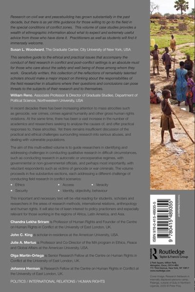 In recent decades there has been increasing attention to mass atrocities such as genocide, war crimes, crimes against humanity, and other gross human rights violations. At the same time, there has been a vast increase in the number of academics and researchers seeking to analyze the causes of, and offer practical responses to, these atrocities. Yet there remains insufficient discussion of the practical and ethical challenges surrounding research into serious abuses and dealing with vulnerable populations. The aim of this edited volume is to guide researchers in identifying and addressing challenges in conducting qualitative research in difficult circumstances, such as conducting research in autocratic or uncooperative regimes, with governmental or non-governmental officials, and perhaps most importantly, with reluctant respondents such as victims of genocide or (on the other side of the coin) war criminals. The volume proceeds in five substantive sections, each addressing a different challenge of conducting field research in conflict-affected or repressive situations: Ethics Access Veracity Security Identity, objectivity, behaviour. This important text will be vital reading for students, scholars and researchers in the areas of research methods, international relations, anthropology and human rights. It will also be of keen interest to policy practioners and NGOs, and especially relevant for those working in the regions of Africa, Latin America, and Asia.
