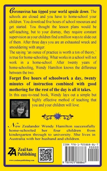 Forget five hours of schoolwork a day, twenty minutes (or less) of instruction combined with good mothering is all it takes. In this easy-to-read book, Wendy lays out a simple but highly effective method of teaching and answers common questions like: How do you deal with the roller-coaster of emotions home-schooling brings in its wake? What works and doesn't work? How do you juggle housework, schoolwork, pre-schoolers and your own needs without going crazy? And because a home-school is not a school in a home, Wendy paints a picture of a typical home-schooling day so we can see the difference. A must-read for women struggling with home-schooling through the coronavirus.