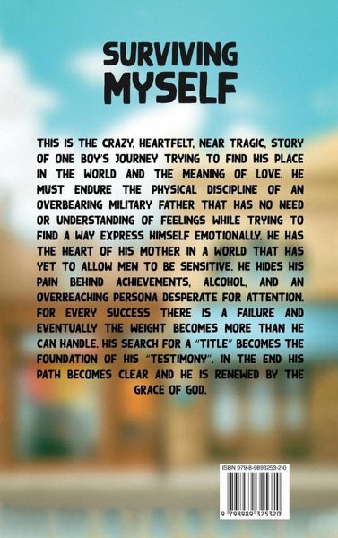 This is the crazy, heartfelt, near tragic, story of one boy's journey trying to find his place in the world and the meaning of love. He must endure the abuse of an overbearing military father that has no need or understanding of feelings while trying to find a way express himself emotionally. He has the heart of his mother in a world that has yet to allow men to be sensitive. He hides his pain behind achievements, alcohol, and an overreaching persona desperate for attention. For every success there is a failure and eventually the weight becomes more than he can handle. His search for a "Title" becomes the foundation of his "Testimony". In the end his path becomes clear and he is renewed by the grace of God.