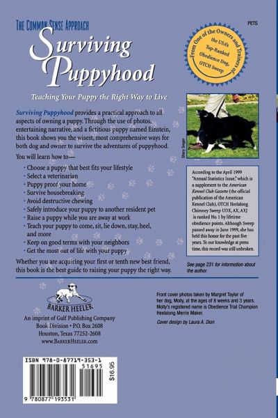 This is the most comprehensive and sensible book on puppy selection, ownership and training that has ever been written..It is a definite must item for anybody considering a dog for a pet. The book covers every topic from selecting and acquiring your pet, to training and comfortably living with it, in an easy to understand and logical manner. Every person considering a dog for a family member should read this book first.