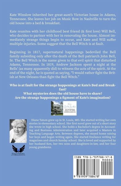 Kate Winslow inherited her great-aunt's Victorian house in Adams, Tennessee. She leaves her job on Music Row in Nashville to turn the old house into a bed & breakfast. Kate reunites with her childhood best friend (& first love) Will Bell, who decides to partner with her in renovating the house. Almost immediately strange things begin to occur, and Kate and Will suffer multiple injuries. Some suggest that the Bell Witch is at fault. Beginning in 1817, supernatural happenings bedeviled the Bell family subsiding only after the death of the Bell patriarch John Bell, Sr. The Bell Witch is the name given to that evil spirit that disturbed Adams, Tennessee. In 1819, Andrew Jackson spent a night at the Bells' (as many apparently did) to witness the acts of the spirit. At the end of the night, he is quoted as saying, "I would rather fight the British at New Orleans than fight the Bell Witch." Who is at fault for the strange happenings at Kate's Bed and Breakfast? What mysteries does the old house have to share? Are the strange happenings a figment of Kate's imagination?