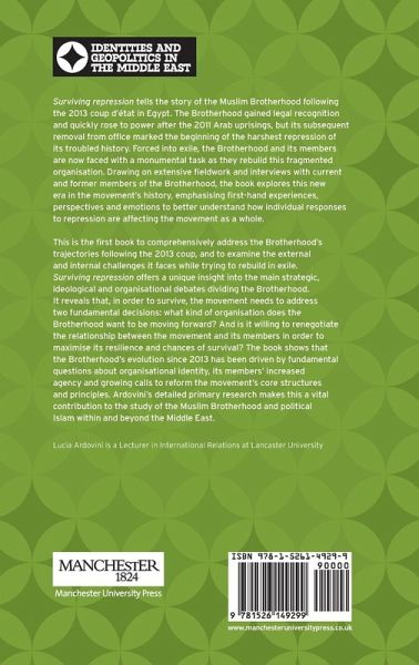 Surviving repression tells the story of the Muslim Brotherhood in the aftermath of the 2013 coup. It is the first book of its kind to analyse the movementâ s recent trajectories by showcasing the experiences of its individual members, analysing how their responses to repression are affecting the movement as a whole. -- .