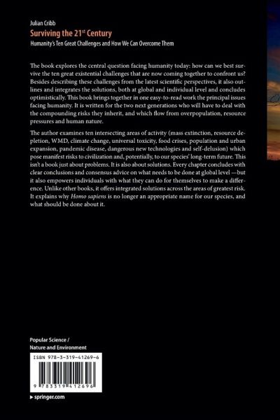 The book explores the central question facing humanity today: how can we best survive the ten great existential challenges that are now coming together to confront us? Besides describing these challenges from the latest scientific perspectives, it also outlines and integrates the solutions, both at global and individual level and concludes optimistically. This book brings together in one easy-to-read work the principal issues facing humanity. It is written for the two next generations who will have to deal with the compounding risks they inherit, and which flow from overpopulation, resource pressures and human nature.