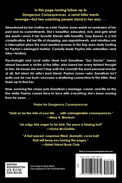 In this page-turning follow-up to Dangerous Consequences, a serial killer wants revenge—but two surprising people stand in her way . . . Abandoned by her mother as a kid, Payton Jones wants no reminders of her past and no commitments. She’s beautiful, educated, rich, and gets what she wants—even if her favorite friends-with-benefits, Tony Barnes, is a hot complication. But her life of shopping, spa appointments, and mindless sex is interrupted when the most wanted woman in the Bay area starts hunting for Payton’s estranged mother. Curiosity leads Payton into unfamiliar—and risky—territory. Psychologist and local radio show host Donathan "Sex Doctor" James almost became a victim of the killer, who bared her every twisted thought to him. He knows she won’t stop until she commits the most personal murder of all. But when his wife’s best friend, Payton Jones—who Donathan isn’t quite sure he can trust—uncovers a shattering connection to the killer, they team up to find her. Now, surviving the chase puts Donathan’s marriage, career, and life on the line while Payton comes face to face with everything she’s been running from for years . . . Praise for Dangerous Consequences "Hold on for the ride of your life . . . with unimaginable consequences." —Mary B. Morrison "An edgy tale eager to be told. The pace is blazing hot!" —Victor McGlothin "A fast¿paced, suspense¿filled, dramatic curve ball that will keep you turning the pages." —Sistah Friend Book Club