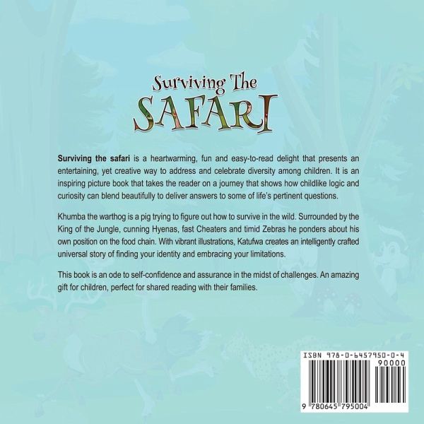 Surviving the safari is a heartwarming, fun and easy-to-read delight that presents an entertaining, yet creative way to address and celebrate diversity among children. It is an inspiring picture book that takes the reader on a journey that shows how childlike logic and curiosity can blend beautifully to deliver answers to some of life's pertinent questions. Khumba the warthog is a pig trying to figure out how to survive in the wild. Surrounded by the King of the Jungle, cunning Hyenas, fast Cheaters and timid Zebras he ponders about his own position on the food chain. With vibrant illustrations, Katufwa creates an intelligently crafted universal story of finding your identity and embracing your limitations. This book is an ode to self-confidence and assurance in the midst of challenges. An amazing gift for children, perfect for shared reading with their families.