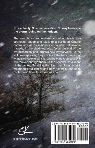 No electricity. No communication. No way to escape the storm raging on the horizon. The search for somewhere to belong leads two strangers, Jacob and Mati, to a secluded Ontario community as its residents encounter unthinkable tragedy. In the shadows, Alex faces the end of the world head on, and forges a new way forward. As the sickness spreads, they confront the harsh reality of what it will take to survive, and how the repercussions will forever change them. In the second installment of the series, Surviving the Storm explores how adversity can unite us, but also tear us apart, and proves that surviving alone does not mean you are immune from the effects of the storm.