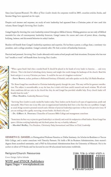Since Jean Lipman-Blumen's The Allure of Toxic Leaders shook the corporate world in 2005, countless articles, books, and Internet blogs have appeared on the topic. Despite such interest and response, no study of toxic leadership had appeared from a Christian point of view until this volume, Kenn Gangel's Surviving Toxic Leaders. Gangel begins by showing that toxic leadership existed throughout biblical history. Making generous use not only of biblical materials but also of contemporary leadership literature, Gangel names the causes and cures of power abuse, cheating, bullying, laziness, and dictatorial behavior in today's leaders. Readers will benefit from Gangel's leadership experience and expertise. He has been a pastor, a college dean (twice), and a college president. Gangel currently edits The Seal, a review of leadership literature. Practical and personal, Surviving Toxic Leaders abounds with stories of real people and their situations. Everyone who has ever had ""trouble at work"" will benefit from Surviving Toxic Leaders.