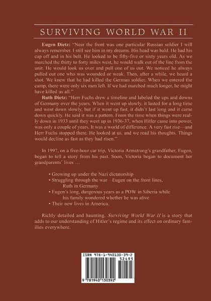 In 1997, on a five-hour car trip, Victoria's grandfather, Eugen, began to tell a story from his past. Soon Victoria began to document her grandparents' lives . . . -Growing up under the Nazi dictatorship-Struggling through the war-Eugen on the front lines, Ruth in Germany-Eugen's long, dangerous years as a POW in Siberia while his family wondered whether he was alive-Their new lives in America.Richly detailed and haunting, "Surviving World War II" is a story that adds to our understanding of Hitler's regime and its effect on ordinary families everywhere.