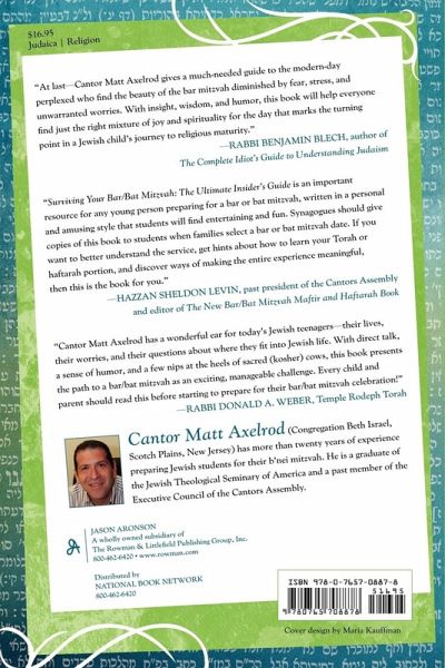 In Surviving Your Bar/Bat Mitzvah, Cantor Matt Axelrod provides a practical, humorous guide for Jewish students and their families as they prepare for their "big day." Breezy and friendly yet reassuring and focused, Axelrod cuts through the fear and stress that teens often feel in the months leading up to their bar or bat mitzvah. Cantor Axelrod's experience helping hundreds of teens prepare for their bnei mitzvah will help students and families not just survive but understand and enjoy this important Jewish milestone.
