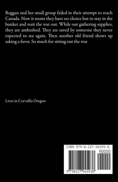 Reggan and her small group failed in their attempt to reach Canada. Now it seems they have no choice but to stay in the bunker and wait the war out. While out gathering supplies, they are ambushed. They are saved by someone they never expected to see again. Then another old friend shows up asking a favor. So much for sitting out the war