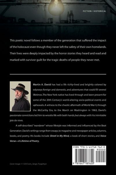 Theodore Karpstein was born in the shadow of World War II and was not allowed to move out of that shadow. His family filled his mind with stories of death and destruction that cover a century or more of their own history and that of their distant relatives. Tales of injustice, of revolution, of pogroms, and of the holocaust become his bedtime narratives. Karpstein wants to be the hero of the stories he hears—and to revenge the wrongs he hears about. In his mind he is both hero and avenger. His own experiences merge with and reinforce the accounts that have filled his mind from a young age. After a series of misfortunes push Karpstein into a period of homelessness he finds a hiding place in a mysterious and possibly haunted building. The building, with its many forgotten rooms and passageways becomes a character in Karpstein’s saga of self-imposed exile. Karpstein’s solitary life in hiding sets free all the demons that filled his imagination. He is surrounded by them in descriptions that use the literary technique of Magic Realism to engage the reader in the main character’s hallucinations. Theodore Karpstein is part of a forgotten generation who suffered psychological wounds although they were far from the actual horrors of the holocaust. They are a forgotten generation. They are marked with survivor guilt for the tragic deaths of people they never met.