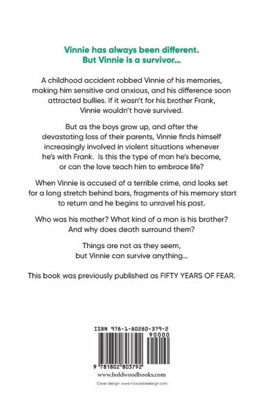 Vinnie has always been different. But Vinnie is a survivor... A childhood accident robbed Vinnie of his memories, making him sensitive and anxious, and his difference soon attracted bullies. If it wasn't for his family and his brother Frank, Vinnie wouldn't have survived. But as the boys grow up, and after the devastating loss of their parents, Vinnie finds himself increasingly involved in violent situations whenever he's with Frank. Is this the type of man he's become, or can the love of a remarkable woman teach him to embrace life? When Vinnie is accused of a terrible crime, and looks set for a long stretch behind bars, fragments of his memory start to return and he begins to unravel his past. Who was his mother? What kind of a man is his brother, Frank? And why does death surround them? Things are not as they seem, but Vinnie can survive anything... Ross Greenwood is back with this shocking, page-turning glimpse into the criminal underworld. This book was previously published as FIFTY YEARS OF FEAR. Praise for Ross Greenwood: 'Move over Rebus and Morse; a new entry has joined the list of great crime investigators in the form of Detective Inspector John Barton. A rich cast of characters and an explosive plot kept me turning the pages until the final dramatic twist.' author Richard Burke 'Master of the psychological thriller genre Ross Greenwood once again proves his talent for creating engrossing and gritty novels that draw you right in and won't let go until you've reached the shocking ending.' Caroline Vincent at Bitsaboutbooks blog 'Ross Greenwood doesn't write clichés. What he has written here is a fast-paced, action-filled puzzle with believable characters that's spiced with a lot of humour.' author Kath Middleton.