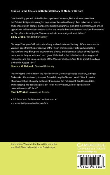 Survivors tells the story of life in Nazi occupied Warsaw, a city that was ruthlessly and brutally targeted by Nazi Germany from 1939 to 1944. Jadwiga Biskupska traces how Germany set out to dismantle the Polish nation and state by targeting the Warsaw intelligentsia and explores the intelligentsia's resistance to Nazi occupation.