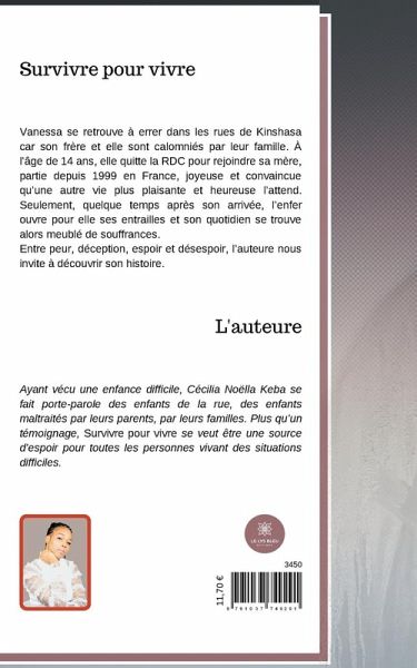 Vanessa se retrouve à errer dans les rues de Kinshasa car son frère et elle sont calomniés par leur famille. À l¿âge de 14 ans, elle quitte la RDC pour rejoindre sa mère, partie depuis 1999 en France, joyeuse et convaincue qüune autre vie plus plaisante et heureuse l¿attend. Seulement, quelque temps après son arrivée, l¿enfer ouvre pour elle ses entrailles et son quotidien se trouve alors meublé de souffrances. Entre peur, déception, espoir et désespoir, l¿auteure nous invite à découvrir son histoire.