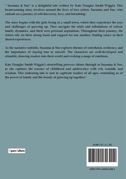 What happens when the innocence of childhood meets the complexities of adult life? "Susanna & Sue" by Kate Douglas Smith Wiggin invites readers into the quaint and picturesque world of early 20th-century America, where the simplicity of rural life is juxtaposed with the intricate dynamics of human relationships. Set against the backdrop of a small New England town, the narrative unfolds through the eyes of Susanna, a woman whose life is a tapestry of love, duty, and societal expectations. Her daughter, Sue, represents the new generation, eager to explore the world beyond the confines of their familiar surroundings. This family saga delves into themes of maternal love, the quest for identity, and the inevitable passage of time. As Susanna navigates the challenges of raising her daughter alone, she must confront her own past and the choices that have shaped her life. The novel paints a vivid picture of the era, capturing the essence of a community bound by tradition yet on the brink of change. Through the lens of this domestic drama, readers are offered a glimpse into the universal struggles of balancing personal desires with familial responsibilities. By weaving together the personal and the universal, "Susanna & Sue" offers a reflection on the enduring bonds of family and the resilience of the human spirit.