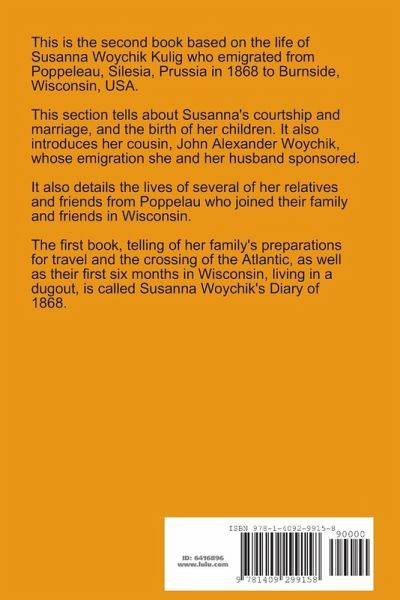 This is the second book detailing the life of Susanna Woychik and her family. It is based on historical people and events, but the story line is fictional.