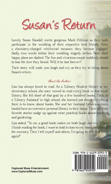 Lovely Susan Randall meets gorgeous Mark Hillman as they both participate in the wedding of their respective best friends. After a chemistry-charged whirlwind romance, they become engaged. Sadly, two weeks before their wedding, tragedy strikes. Now their happy plans are dashed. The fun and vivacious couple suddenly stands to lose the love they found. Will it be lost forever? Their story will make you laugh and cry as they try to bring about Susan's return.