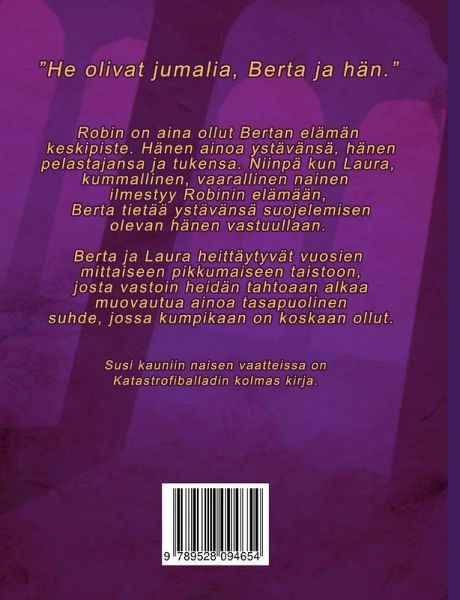 Robin on aina ollut Bertan elämän keskipiste. Hänen ainoa ystävänsä, hänen pelastajansa ja tukensa. Niinpä kun Laura, kummallinen, vaarallinen nainen ilmestyy Robinin elämään, Berta tietää ystävänsä suojelemisen olevan hänen vastuullaan. Berta ja Laura heittäytyvät vuosien mittaiseen pikkumaiseen taistoon, josta vastoin heidän tahtoaan alkaa muovautua ainoa tasapuolinen suhde, jossa kumpikaan on koskaan ollut. Susi kauniin naisen vaatteissa on Katastrofiballadin kolmas kirja.