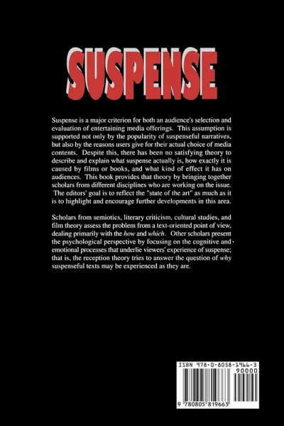This volume begins with the general assumption that suspense is a major criterion for both an audience's selection and evaluation of entertaining media offerings. This assumption is supported not only by the popularity of suspenseful narratives, but also by the reasons users give for their actual choice of media contents. Despite this, there is no satisfying theory to describe and explain what suspense actually is, how exactly it is caused by films or books, and what kind of effect it has on audiences. This book's main objective is to provide that theory by bringing together scholars from different disciplines who are working on the issue. The editors' goal is to reflect the "state of the art" as much as it is to highlight and encourage further developments in this area.
