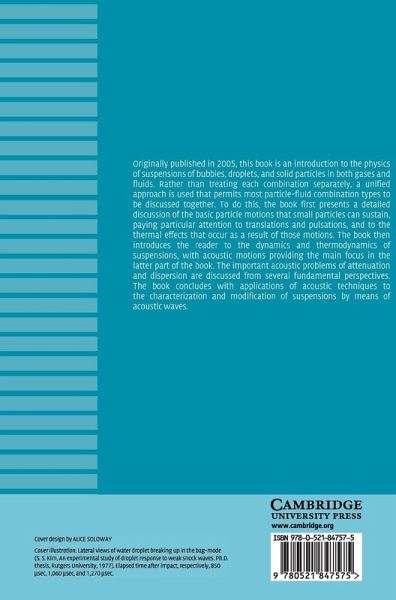 This book is an introduction to the physics of suspensions of bubbles, droplets, and solid particles in both gases and fluids. Rather than treating each combination separately, a unified approach is used that permits most particle-fluid combination types to be discussed together. To do this, the book first presents a detailed discussion of the basic particle motions that small particles can sustain, paying particular attention to translations and pulsations, and to the thermal effects that occur as a result of those motions. The book then introduces the reader to the dynamics and thermodynamics of suspensions, with acoustic motions providing the main focus in the latter part of the book. The important acoustic problems of attenuation and dispersion are discussed from several fundamental perspectives. The book concludes with applications of acoustic techniques to the characterization and modification of suspensions by means of acoustic waves.