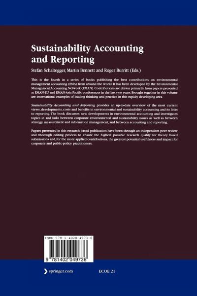 Conceptual developments of sustainability accounting tools.- Sustainability Accounting and Reporting: Development, Linkages and Reflection. An Introduction.- Corporate Sustainability Accounting. A Catchphrase for Compliant Corporations or a Business Decision Support for Sustainability Leaders?.- Towards a Monetised Triple Bottom Line for an Alcohol Producer. Using Stakeholder Dialogue to Negotiate a 'Licence to Operate' by Constructing an Account of Social Performance.- Integrating Sustainability into Traditional Financial Analysis.- The Concept of Corporate Resource Efficiency Accounting. A Case Study in the Electronic Industry.- Accounting for Health and Safety Costs. Review and Comparison of Selected Methods.- Implementing Standard Costing with an Aim to Guiding Behaviour in Sustainability Orientated Organisa.- Linking environmental and sustainability accounting with eonomic success.- Achieving Environmental-Economic Sustainability through Corporate Environmental Strategies. Empirical Evidence on Environmental Shareholder Value.- The Impact of Carbon Constraints on Competitiveness and Value Creation in the Automotive Industry.- Traditional Accounting Return Ratios and Business Sustainability. An Incompatible Relationship in the Context of Greek Strategic Business Units.- Is there a Market Payoff for Being Green at the Lima Stock Exchange?.- Integrating and Reporting an Organisation's Economic, Social and Environmental Performance. The Expanded Value Added Statement.- Reporting external accounting frameworks and benchmarking.- Corporate Sustainability Reporting. An Overview.- Taking the GRI to Scale. Towards the Next Generation of Sustainability Reporting Guidelines.- The JEPIX Initiative in Japan. A New Ecological Accounting System for a Better Measurement ofEco-Efficiency.- The Green-Budget Matrix Model. Theory and Cases in Japanese Companies.- Quality of Physical Environmental Management Accounting Information. Lessons from Pollutant Release and Transfer Registers.- Benchmarking Environmental Performance in the English University Sector. The Experience of the Higher Education Environmental Performance Improvement (HEEPI) Project.- National experiences and developments in environmental and sustainability accounting.- Environmental Management Accounting in Czech Companies that have Implemented Environmental Management Systems.- Corporate Environmental Accounting and Reporting in China. Current Status and the Future.- Development of Corporate Environmental Accounting in Korea. Case Studies and Policy Implications.- Understanding and Supporting Management Decision- Making. South East Asian Case Studies on Environmental Management Accounting.- New developments and national experiences in sustainability reporting.- Just a Paper Tiger? Exploration of Sustainability Reporting as a Corporate Communication Instrument.- Interactive Sustainability Reporting. Developing Clear Target Group Tailoring and Stimulating Stakeholder Dialogue.- Corporate Sustainability Reporting. Evidence from the First Swiss Benchmark Survey.- Comparability of Sustainability Reports. A Comparative Content Analysis of Austrian Sustainability Reports.- EMA computer technology developments and internet.- Computer Support for Environmental Management Accounting.- Environmental Performance Measurement Using the EPMKOMPAS Approach as one Step Towards Sustainability. The Assessment Method in the EPM-KOMPAS Approach as a Guide for SMEs Towards Better Environmental Performance.- Web-Based Environmental Management Systems for SMEs. Enhancing the Diffusion of Environmental Management in the Transportation Sector.- Towards integrated sustainability performance measurement and management.- Managing Sustainability Performance Measurement and Reporting in an Integrated Manner. Sustainability Accounting as the Link between the Sustainability Balanced Scorecard and Sustainability Reporting.