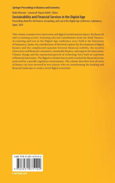 This volume examines how innovation and digital transformation impact the financial and accounting sectors. Featuring selected contributions from the third 'Finance, Accounting and Law in the Digital Age conference 2024' held at the University of Salamanca, Spain, the contributions of this book explore the development of digital finance and the complicated equation between financial stability, the security of investors and financial consumers, sustainable finance, and support for innovation. Climate change and the exponential growth of technology have built an explosion of financial innovation. The digital revolution has recently reached the financial sector, protected by a specific regulatory environment. The volume describes how all areas of finance are now invested by new players who are transforming the banking and financial landscape to create a novel digital ecosystem.