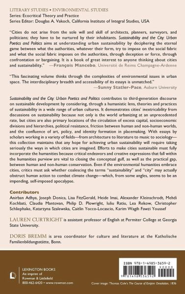 Sustainability and the City: Urban Poetics and Politics contributes to third-generation discourse on sustainable development by considering, through a humanistic lens, theories and practices of sustainability in a wide range of urban cultures. It demonstrates cities' inextricability from discussions on sustainability because not only is the world urbanizing at an unprecedented rate but also cities are primary locations of the circulation of excess capital, socioeconomic divisions and hierarchies, political resistance, friction between human and non-human worlds, and the confluence of art, policy, and identity formation in placemaking. With essays by scholars working in a variety of fields-from architecture to literature to music to sociology-this collection maintains that any hope for achieving urban sustainability will require taking seriously the ways in which cities are imagined. Efforts to make cities sustainable must fully incorporate the humanities because critical endeavors and creative expressions that fall within the purview of the humanities are vital to closing the conceptual gulf, as well as the practical gap, between human and non-human conservation. Even if the environmental humanities embrace cities, critics must ask whether coalescing the terms 'sustainability' and 'city' may actually obstruct human action to combat climate change-which, from some angles, seems impending, self-imposed apocalypse. To examine the urban turn, Sustainability and the City attends to culture. Essays in the first part of the collection approach urban sustainability from various disciplinary vantage points to emphasize history, ideology, pedagogy, and critical theory. The second part of the collection analyzes urban commons on four different continents. Finally, the collection moves from a diverse set of interpretations of on-the-ground urban phenomena to a compilation of readings of sustainability in different media and genres-sound art, drama, fiction, and film-set in, or evocative of, cities. The collection carves out a place for artists and critics to help realize social justice in cities, which generate remarkable power, but power that is too often and too easily used destructively, unfairly, and wastefully despite cities' unique capacities to inspire and sustain humanity.
