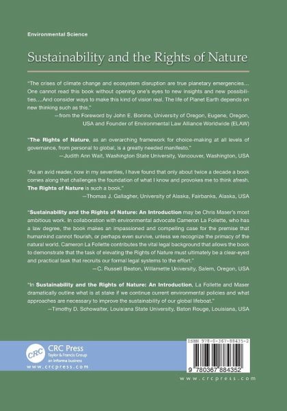 Sustainability and the Rights of Nature: An Introduction is a much-needed guide that addresses the exciting and significant paradigm shift to the Rights of Nature, as it is occurring both in the United States and internationally in the fields of environmental law and environmental sustainability. This shift advocates building a relationship of integrity and reciprocity with the planet by placing Nature in the forefront of our rights-based legal systems. The authors discuss means of achieving this by laying out Nature's Laws of Reciprocity and providing a roadmap of the strategies and directions needed to create a Rights of Nature-oriented legal system that will shape and maintain human activities in an environmentally sustainable manner. This work is enriched with an array of unique and relevant points of reference such as the feudal notions of obligation, principles of traditional indigenous cultivation, the Pope Francis Encyclical on the environment, and the new Rights of Nature-based legal systems of Ecuador and Bolivia that can serve as prototypes for the United States and other countries around the world to help ensure a future of environmental sustainability for all living systems.