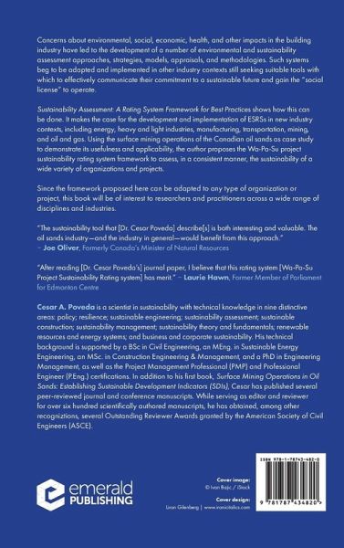 Cesar A. Poveda is a scientist in sustainability with technical knowledge in nine distinctive areas: policy; resilience; sustainable engineering; sustainability assessment; sustainable construction; sustainability management; sustainability theory and fundamentals; renewable resources and energy systems; and business and corporate sustainability. His technical background is supported by a BSc in Civil Engineering, an MEng. in Sustainable Energy Engineering, an MSc. in Construction Engineering & Management, and a PhD in Engineering Management, as well as the Project Management Professional (PMP) and Professional Engineer (P.Eng.) certifications. In addition to his first book, Surface Mining Operations in Oil Sands: Establishing Sustainable Development Indicators (SDIs), Cesar has published several peer-reviewed journal and conference manuscripts. While serving as editor and reviewer for over six hundred scientifically authored manuscripts, he has obtained, among other recogniztions, several Outstanding Reviewer Awards granted by the American Society of Civil Engineers (ASCE).