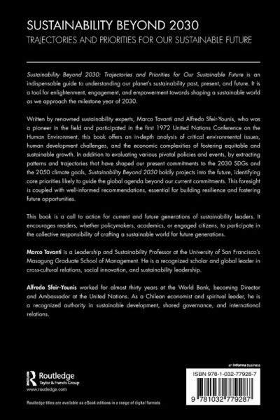 Written by renowned sustainability experts, Marco Tavanti and Alfredo Sfeir-Younis, who was a pioneer in the field and participated in the first 1972 United Nations Conference on the Human Environment, this book offers an in-depth analysis of critical environmental issues, human development challenges, and the economic complexities of fostering equitable and sustainable growth. In addition to evaluating various pivotal policies and events, by extracting patterns and trajectories that have shaped our present commitments to the 2030 SDGs and the 2050 climate goals, Sustainability Beyond 2030 boldly projects into the future, identifying core priorities likely to guide the global agenda beyond our current commitments. This foresight is coupled with well-informed recommendations, essential for building resilience and fostering future opportunities.