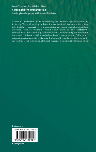I. Mapping Sustainability Communication.- 1. Sustainability Communication - An Introduction.- 2. Strong Sustainability as a Frame for Sustainability Communication.- 3. Sustainability Communication an Integrative Approach.- 4. Sustainable Communication as An Inter- and Transdisciplinary Discipline.- II. Framework of Sustainability Communication.- 5. Sociological Perspectives on Sustainability Communication.- 6. Psychological Aspects of Sustainability Communication.- 7. Media Theory and Sustainability Communication.- 8. Communication Theory and Sustainability Discourse.- 9. Communicating Education for Sustainable Development.- 10. Sustainability Communication: A Systemic-constructivist Perspective.- III. Practice of Sustainability Communication.- 11. Climate Change as an Element of Sustainability Communication.- 12. Biodiversity and Sustainability Communication.- 13. Communicating Sustainable Consumption.- 14. Corporate Sustainability Reporting.- 15. Computer Support for Cooperate Sustainability Communication.- 16. Participation: Empowerment for Sustainable Development.- Index.