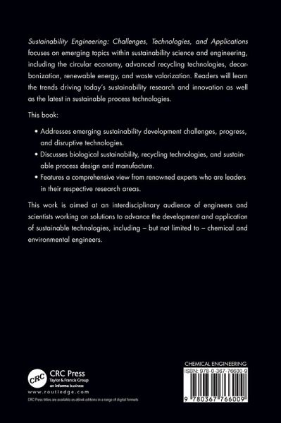 This book: Addresses emerging sustainability development challenges, progress, and disruptive technologiesDiscusses biological sustainability, recycling technologies, and sustainable process design and manufactureFeatures a comprehensive view from renowned experts who are leaders in their respective research areas This work is aimed at an interdisciplinary audience of engineers and scientists working on solutions to advance the development and application of sustainable technologies, including - but not limited to - chemical and environmental engineers.