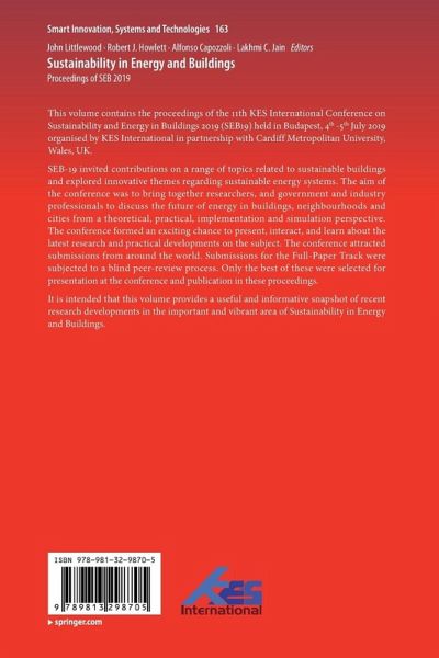 This volume contains the proceedings of the 11th KES International Conference on Sustainability and Energy in Buildings 2019 (SEB19) held in Budapest, 4th -5th July 2019 organised by KES International in partnership with Cardiff Metropolitan University, Wales, UK. SEB-19 invited contributions on a range of topics related to sustainable buildings and explored innovative themes regarding sustainable energy systems. The aim of the conference was to bring together researchers, and government and industry professionals to discuss the future of energy in buildings, neighbourhoods and cities from…mehr