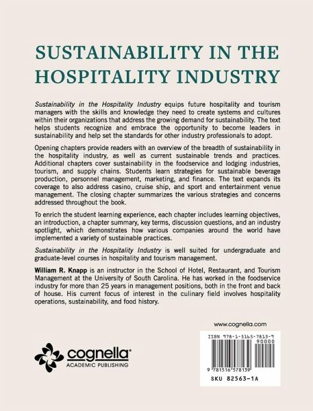 Sustainability in the Hospitality Industry equips future hospitality and tourism managers with the skills and knowledge they need to create systems and cultures within their organizations that address the growing demand for sustainability. The text helps students recognize and embrace the opportunity to become leaders in sustainability and help set the standards for other industry professionals to adopt. Opening chapters provide readers with an overview of the breadth of sustainability in the hospitality industry, as well as current sustainable trends and practices. Additional chapters cover sustainability in the foodservice and lodging industries, tourism, and supply chains. Students learn strategies for sustainable beverage production, personnel management, marketing, and finance. The text expands its coverage to also address casino, cruise ship, and sport and entertainment venue management. The closing chapter summarizes the various strategies and concerns addressed throughout the book. To enrich the student learning experience, each chapter includes learning objectives, an introduction, a chapter summary, key terms, discussion questions, and an industry spotlight, which demonstrates how various companies around the world have implemented a variety of sustainable practices. Sustainability in the Hospitality Industry is well suited for undergraduate and graduate-level courses in hospitality and tourism management.