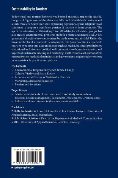 Sustainability and green topics have become a crucial element in modern economy. All sectors of the economy are concerned, also the tourism industry. This book takes an overview on developments of sustainability in tourism from a multidisciplinary view point: economy, marketing, social science, media studies, political studies. In order to under-stand the long term changes in the field it is important to include different scientific approaches.