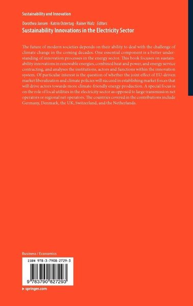 The future of modern societies depends on their ability to deal with the challenge of climate change in the coming decades. One essential component is a better understanding of innovation processes in the energy sector. This book focuses on sustainability innovations in renewable energies, combined heat and power, and energy service contracting, and analyses the institutions, actors and functions within the innovation system. Of particular interest is the question of whether the joint effect of EU-driven market liberalization and climate policies will succeed in establishing market forces that will drive actors towards more climate-friendly energy production. A special focus is on the role of local utilities in the electricity sector as opposed to large transmission net operators or regional net operators. The countries covered in the contributions include Germany, Denmark, the UK, Switzerland, and the Netherlands.
