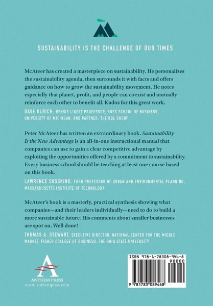 "Sustainability Is the New Advantage" is a practical blueprint for leaders who want to start, develop, and grow sustainable organizations. The book provides stories and practical examples of how to assess challenges, create demonstrations projects, and scale the capabilities needed for sustainable business transformation.