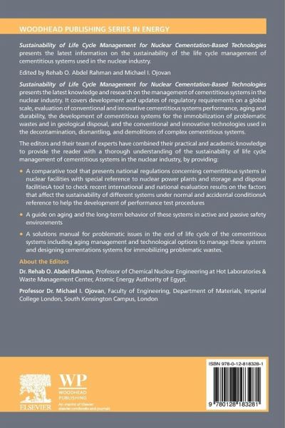 Sustainability of Life Cycle Management for Nuclear Cementation-Based Technologies, edited by Dr. Rahman and Dr. Ojovan, presents the latest knowledge and research on the management of cementitious systems within nuclear power plants. The book covers aging, development and updates on regulatory frameworks on a global scale, the development of cementitious systems for the immobilization of problematic wastes, and the decommissioning and decontamination of complex cementitious systems. The book's editors and their team of experts combine their practical knowledge to provide the reader with a thorough understanding on the sustainability of lifecycle management of cementitious systems within the nuclear industry.