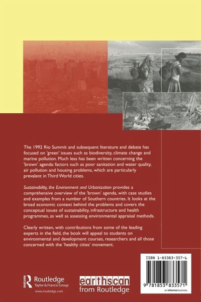 The 1992 Rio Summit and subsequent literature and debate has focused on 'green' issues such as biodiversity, climate change and marine pollution. Much less has been written concerning the 'brown' agenda: factors such as poor sanitation and water quality, air pollution and housing problems which are particularly prevalent in Third World cities. Sustainability, the Environment and Urbanisation provides a comprehensive overview of the brown agenda, with case studies and examples from a number of Southern countries. It looks at the broad economic context behind the problems and covers the conceptual issues of sustainability, infrastructure and health programmes, as well as assessing environmental appraisal methods. Clearly written, with contributions from some of the leading experts in the field, the book will appeal to students on environmental and developmental courses, researchers, and all those concerned with the 'healthy cities' movement.