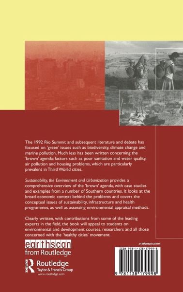 The 1992 Rio Summit and subsequent literature and debate has focused on 'green' issues such as biodiversity, climate change and marine pollution. Much less has been written concerning the 'brown' agenda: factors such as poor sanitation and water quality, air pollution and housing problems which are particularly prevalent in Third World cities. Sustainability, the Environment and Urbanisation provides a comprehensive overview of the brown agenda, with case studies and examples from a number of Southern countries. It looks at the broad economic context behind the problems and covers the conceptual issues of sustainability, infrastructure and health programmes, as well as assessing environmental appraisal methods. Clearly written, with contributions from some of the leading experts in the field, the book will appeal to students on environmental and developmental courses, researchers, and all those concerned with the 'healthy cities' movement.