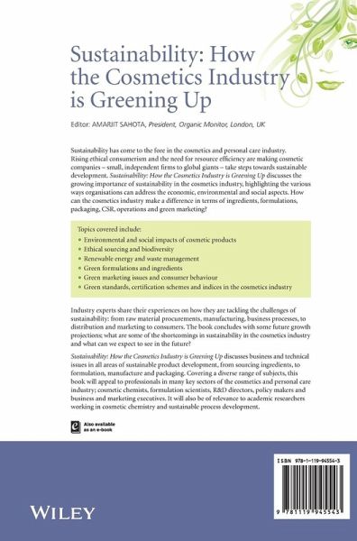 "Amarjit Sahota's book is a well-researched andcomprehensive snapshot on the different facets of sustainability incosmetics today. This is the first, and currently, the only book onthis hot topic; it's a must read." (Chemistry& Industry, 14 July 2014)