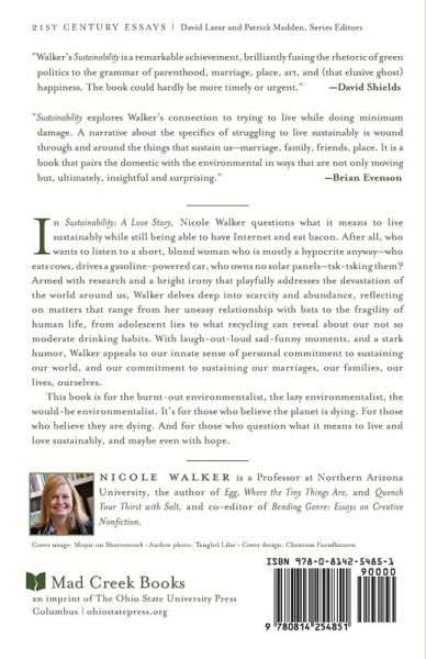 In Sustainability: A Love Story, Nicole Walker questions what it means to live sustainably while still being able to have Internet and eat bacon. After all, who wants to listen to a short, blond woman who is mostly a hypocrite anyway-who eats cows, drives a gasoline-powered car, who owns no solar panels-tsk-tsking them? Armed with research and a bright irony that playfully addresses the devastation of the world around us, Walker delves deep into scarcity and abundance, reflecting on matters that range from her uneasy relationship with bats to the fragility of human life, from adolescent lies to what recycling can reveal about our not so moderate drinking habits. With laugh-out-loud sad-funny moments, and a stark humor, Walker appeals to our innate sense of personal commitment to sustaining our world, and our commitment to sustaining our marriages, our families, our lives, ourselves. This book is for the burnt-out environmentalist, the lazy environmentalist, the would-be environmentalist. It's for those who believe the planet is dying. For those who believe they are dying. And for those who question what it means to live and love sustainably, and maybe even with hope.