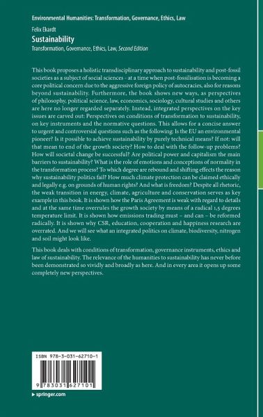 This book deals with conditions of transformation, governance instruments, ethics and law of sustainability. The relevance of the humanities to sustainability has never before been demonstrated so vividly and broadly as here. Andin every areait opens up some completely new perspectives. (Prof. Dr. Dr. h.c. mult. Ernst Ulrich von Weizsäcker, Club of Rome, Honorary President)