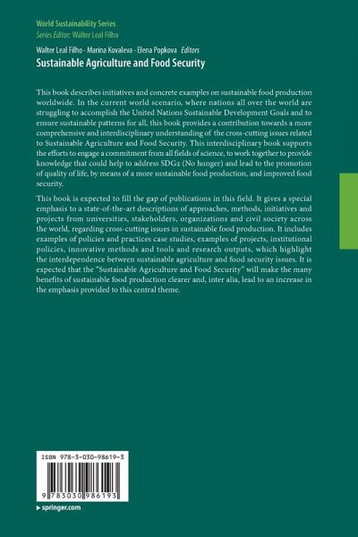 This book describes initiatives and concrete examples on sustainable food production worldwide. In the current world scenario, where nations all over the world are struggling to accomplish the United Nations Sustainable Development Goals and to ensure sustainable patterns for all, this book provides a contribution towards a more comprehensive and interdisciplinary understanding of the cross-cutting issues related to Sustainable Agriculture and Food Security. This interdisciplinary book supports the efforts to engage a commitment from all fields of science, to work together to provide knowledge that could help to address SDG2 (No hunger) and lead to the promotion of quality of life, by means of a more sustainable food production, and improved food security.