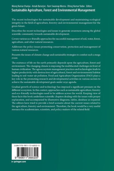 Gradual growth of science and technology has imposed a significant pressure on the different ecosystem. In this context, approaches such as sustainable agriculture, forestry and eco-friendly technologies need to be address across the world. Keeping view of these facts this book underlines scientific chapters dealing with the issues with proper explanation, and accompanied by illustrative diagrams, tables, database as required. The editors have tried to provide a brief scenario about the current issues related to the agriculture, forestry and environment. Therefore, the book would be a very useful resource for academicians, scientists, and policy makers of the related field.