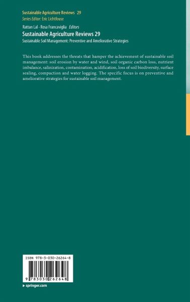 This book addresses the threats that hamper the achievement of sustainable soil management: soil erosion by water and wind, soil organic carbon loss, nutrient imbalance, salinization, contamination, acidification, loss of soil biodiversity, surface sealing, compaction and water logging. The specific focus is on preventive and ameliorative strategies for sustainable soil management.
