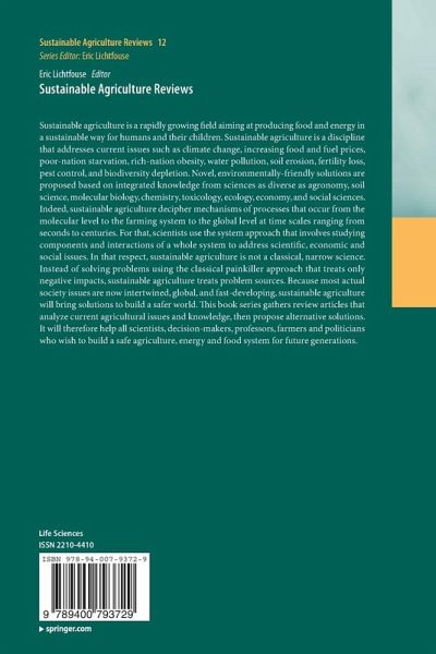 Sustainable agriculture is a rapidly growing field aiming at producing food and energy in a sustainable way for humans and their children. Sustainable agriculture is a discipline that addresses current issues such as climate change, increasing food and fuel prices, poor-nation starvation, rich-nation obesity, water pollution, soil erosion, fertility loss, pest control, and biodiversity depletion. Novel solutions are proposed based on integrated knowledge from sciences as diverse as agronomy, soil science, molecular biology, chemistry, toxicology, ecology, economy, philosophy and social sciences. Because actual society issues are now intertwined, global, and fast-developing, sustainable agriculture will bring solutions to build a safer world. This book series gathers review articles that analyze current agricultural issues and knowledge, then propose alternative solutions. It will therefore help all scientists, decision-makers, professors, farmers and politicians who wish to builda safe agriculture, energy and food system for future generations.