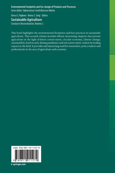This book highlights the environmental footprints and best practices in sustainable agriculture. This second volume includes fifteen interesting chapters that present agriculture in the light of forest conservation, circular economy, climate change, sustainability, food security during pandemics and soil conservation, written by leading experts in the field. It provides and interesting read for researchers, policy makers and professionals in the area of agriculture and economy.