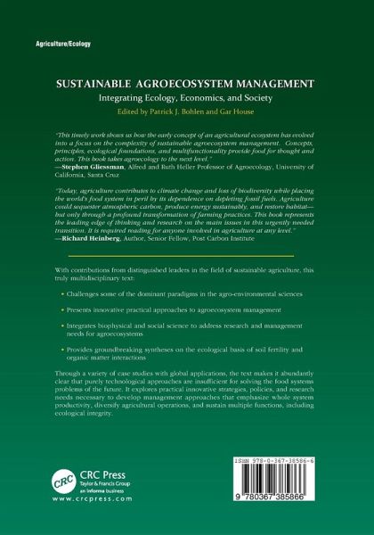 Agroecosystem Management for the Twenty-First Century: Sustaining Ecosystems, Economies, and Communities in a Time of Global Change. BEN STINNER'S CONTRIBUTION TO AGROECOSYSTEM SCIENCE. Evolution of Agroecosystem Management in the Life of Benjamin R. Stinner: A Reflection on His Journey and Legacy. Ecological Integration of the Social and Natural Sciences in the Sugar Creek Method. UNIFYING CONCEPTS AND PRINCIPLES OF SUSTAINABLE AGROECOSYSTEM MANAGEMENT. Rethinking the First Principles of Agroecology: Ecological, Social, and Economic. Potential for a New Generation of Biodiversity in Agroecosystems. The Necessity and Possibility of an Agriculture Where Nature Is the Measure. Energy and Human Population Growth: The Role of Agriculture. Beyond Systems Thinking in Agroecology: Holons, Intentionality, and Resonant Configurations. ECOLOGICAL FOUNDATIONS OF AGROECOSYSTEM MANAGEMENT. Ecology-Based Agriculture and the Next Green Revolution: Is Modern Agriculture Exempt from the Laws of Ecology? Agroecosystem Integrity and the Internal Cycling of Nutrients. The Role of Biodiversity in Agronomy and Agroecosystem Management in the Coming Century. Long-Term Consequences of Biological and Biogeochemical Changes in the Horseshoe Bend Long-Term Agroecosystem Project. MANAGING ACROECOSYSTEMS AND RESEARCH TO SUPPORT MULTIPLE FUNCTIONS AND OUTCOMES. Challenges and Benefits of Developing Multifunctional Agroecosystems. Conceptual Model for Integrating Ecological and Economic Sustainability in Agroecosystems: An Example from Subtropical Grazing Lands. Principles of Dynamic Integrated Agricultural Systems. Participatory Approaches and Stakeholder Involvement in Sustainable Agriculture Research. Retrofitting Suburban Landscapes with Sustainable Agroecosystems. Index.